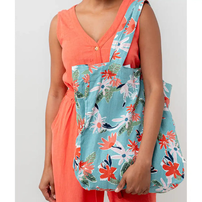 Holly Flap Over Crossbody Bag - Blue & Taupe