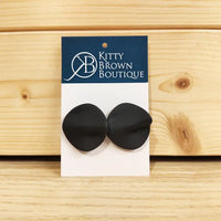 Add a touch of sophistication to your jewelry collection with our Matt Wave Stud Earrings in black. These stylish stud earrings feature a large circular disc with a unique matte finish and wave design. Perfect for those who love statement earrings!