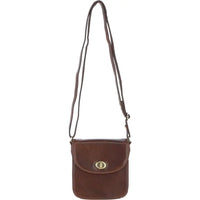 Compact, stylish, and made for convenience, this small leather crossbody bag is perfect for carrying the essentials in a refined silhouette. Crafted from smooth leather with gold-coloured hardware, it offers just the right amount of space with a secure twist lock closure and thoughtful internal organisation.