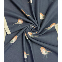 Elevate your winter wardrobe with this exquisite reversible scarf, crafted from a luxurious wool and acrylic blend. Featuring a striking denim blue on one side and soft ecru on the other, both adorned with delicate robin motifs that capture the charm of the season. The frayed edges add an artisanal touch, whilst the generous 63cm x 180cm dimensions provide versatile styling options. A refined accessory that transitions effortlessly between looks, offering two distinct aesthetics in one timeless piece.