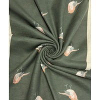 Elevate your winter wardrobe with this exquisite reversible scarf, crafted from a luxurious wool and acrylic blend. Featuring a striking military green on one side and soft ecru on the other, both adorned with delicate robin motifs that capture the charm of the season. The frayed edges add an artisanal touch, whilst the generous 63cm x 180cm dimensions provide versatile styling options. A refined accessory that transitions effortlessly between looks, offering two distinct aesthetics in one timeless piece.