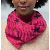 Effortlessly elegant, the Pink & Navy Stars Magnetic Neck Scarf combines the timeless appeal of a traditional snood with modern convenience. The hidden magnetic clasp makes dressing simple—no fussing with knots or pins. Crafted from soft, breathable polyester, it drapes beautifully at your neckline without adding bulk, while the exclusive indigo floral print brings understated sophistication to any look. Perfect for everyday wear, travel, or as a thoughtful gift.