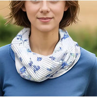 Effortlessly elegant, the Forget Me Not Magnetic Neck Scarf in white combines the timeless appeal of a traditional snood with modern convenience. The hidden magnetic clasp makes dressing simple—no fussing with knots or pins. Crafted from soft, breathable polyester, it drapes beautifully at your neckline without adding bulk, while the exclusive indigo floral print brings understated sophistication to any look. Perfect for everyday wear, travel, or as a thoughtful gift.