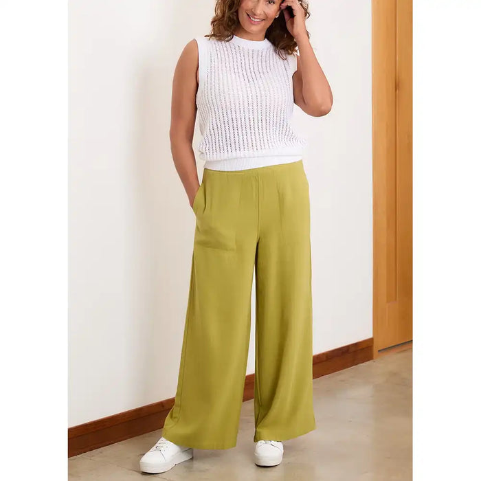 Wide Leg Wool Touch Trousers - Grey Pinstripe