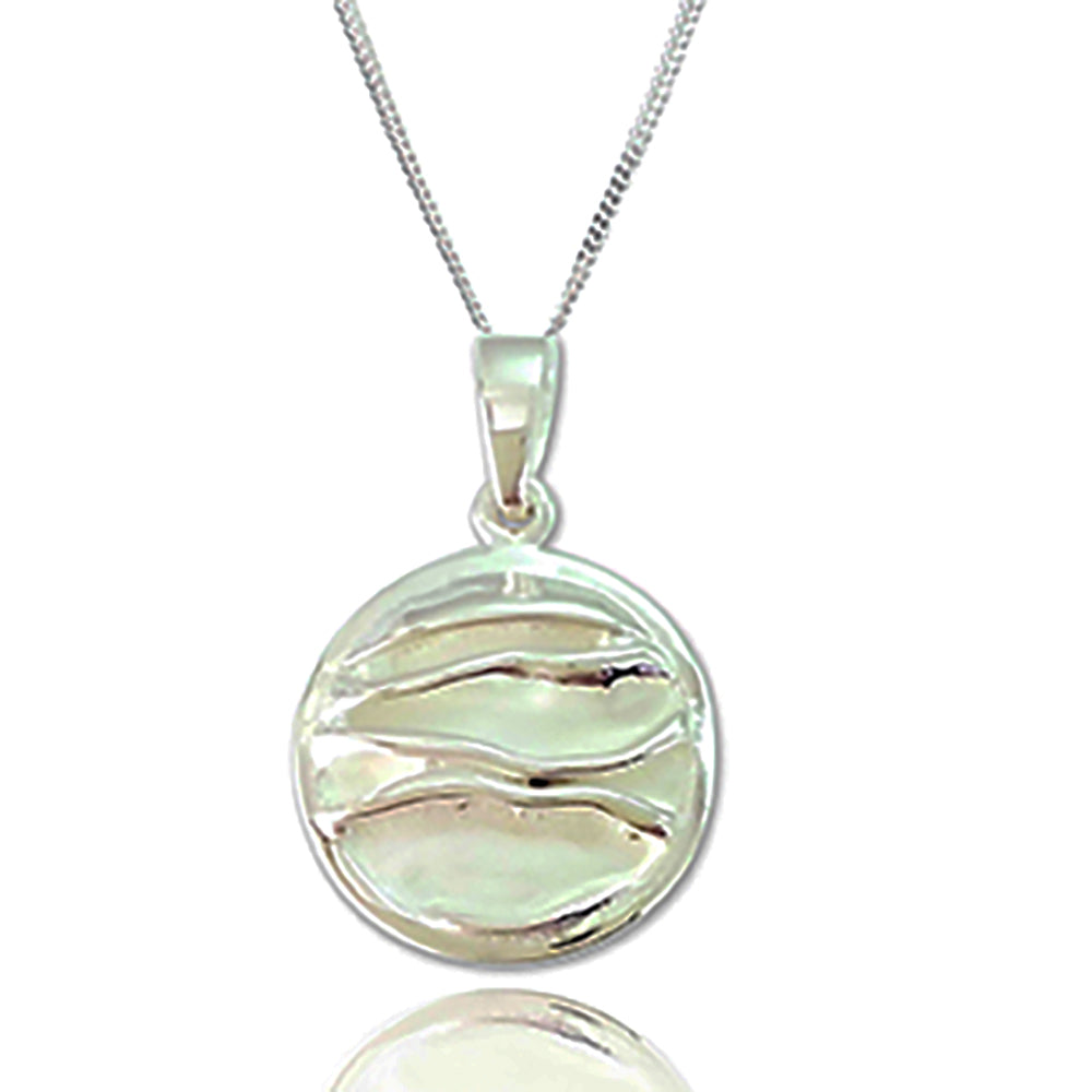 Pretty sterling silver pendant in a circular ruched design with both high polish and satin finishes on an 18" sterling silver chain. Pendant measures 15mm. Presentation box included. Matching earrings available.