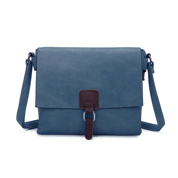Holly Flap Over Crossbody Bag - Blue & Taupe