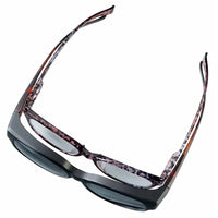 Slim profile frame designed to conveniently place over and hide your prescription eyewear. Fits over the majority of styles but can be worn alone.