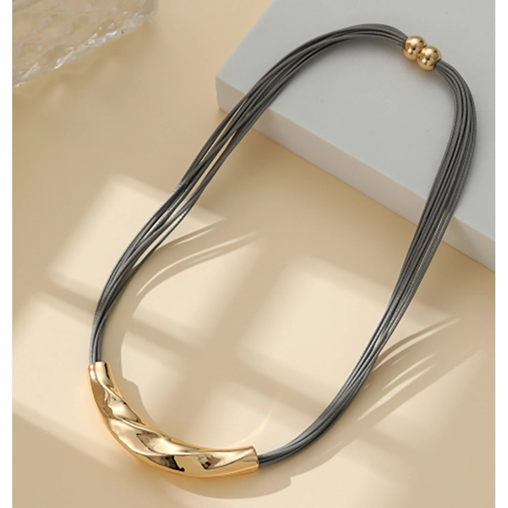 Switch up your style with our Spiral Gold Plate Cord Necklace. Featuring a magnetic fastening, this corded necklace offers a high shine gold plate as a pendant with a spiral effect. Perfect for those who like to play with their look!